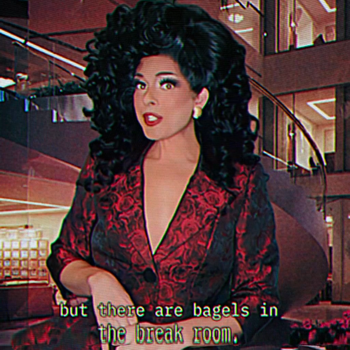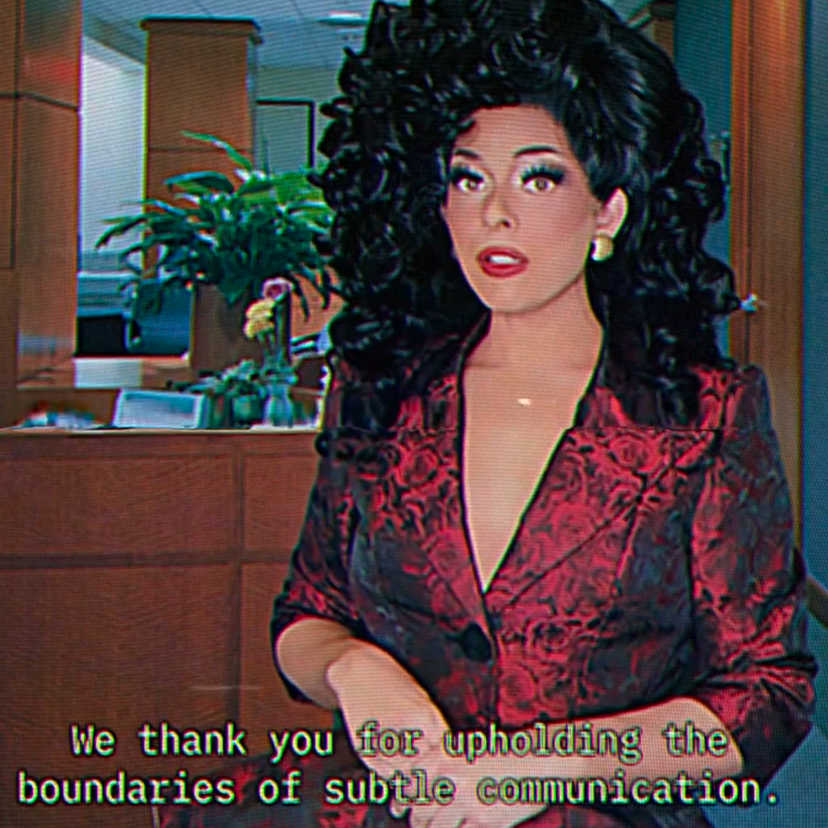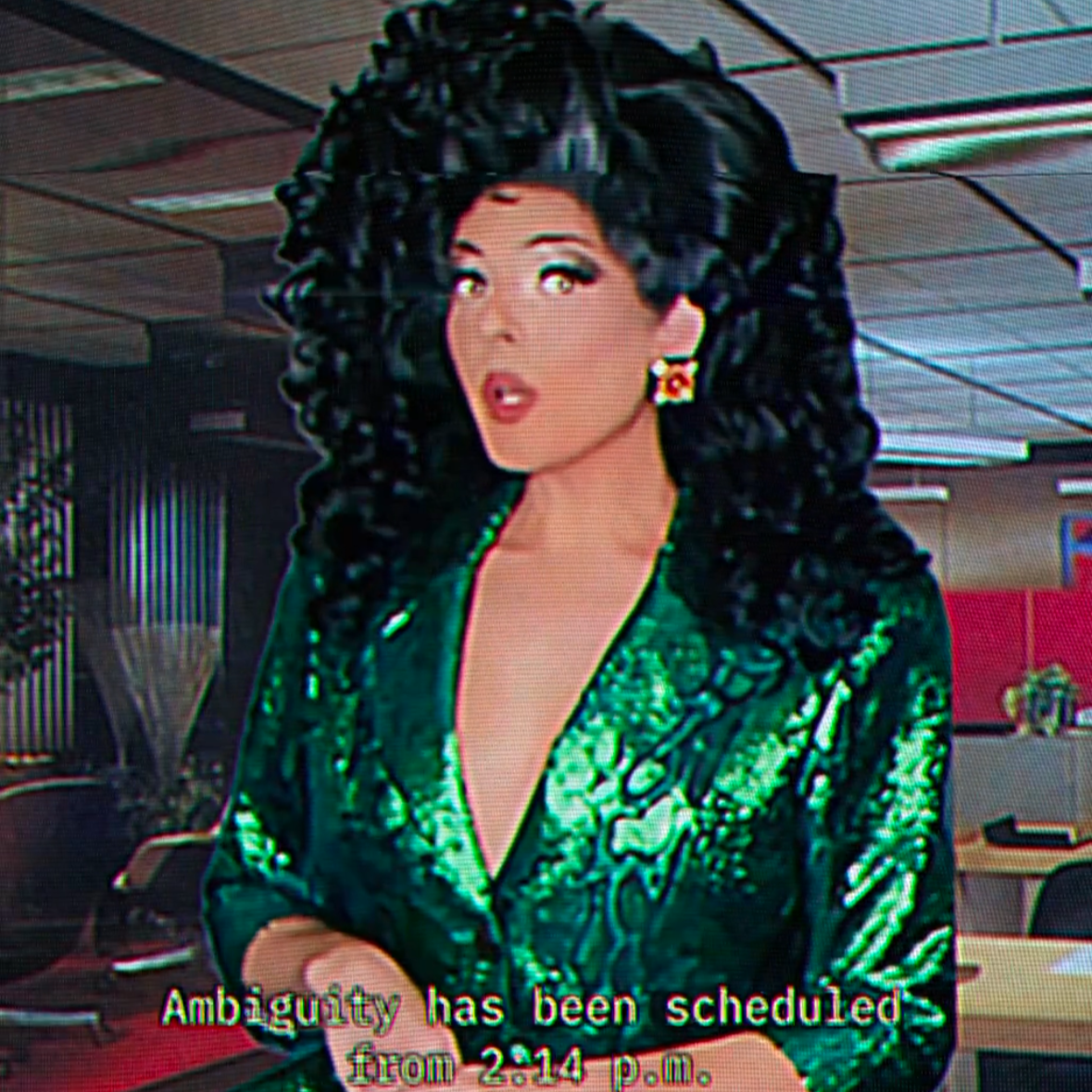 Her work lives at the intersection of lo-fi VHS glamour, surreal office folklore, and 90’s-inflected corporate aesthetics. Across social media platforms, Pocket presents a recurring narrative universe of internal memos, HR bulletins, and procedural announcements; low-stakes interpersonal folklore from jobs that never existed, all contained in a shimmering, endless office bureaucracy where tone is everything and nothing is urgent.